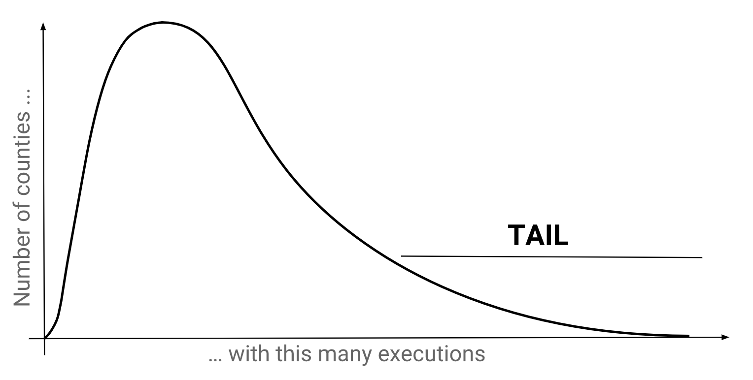 In the context of executions in Texas, the long tail refers to a small number of counties which have been known to conduct a large number of executions.